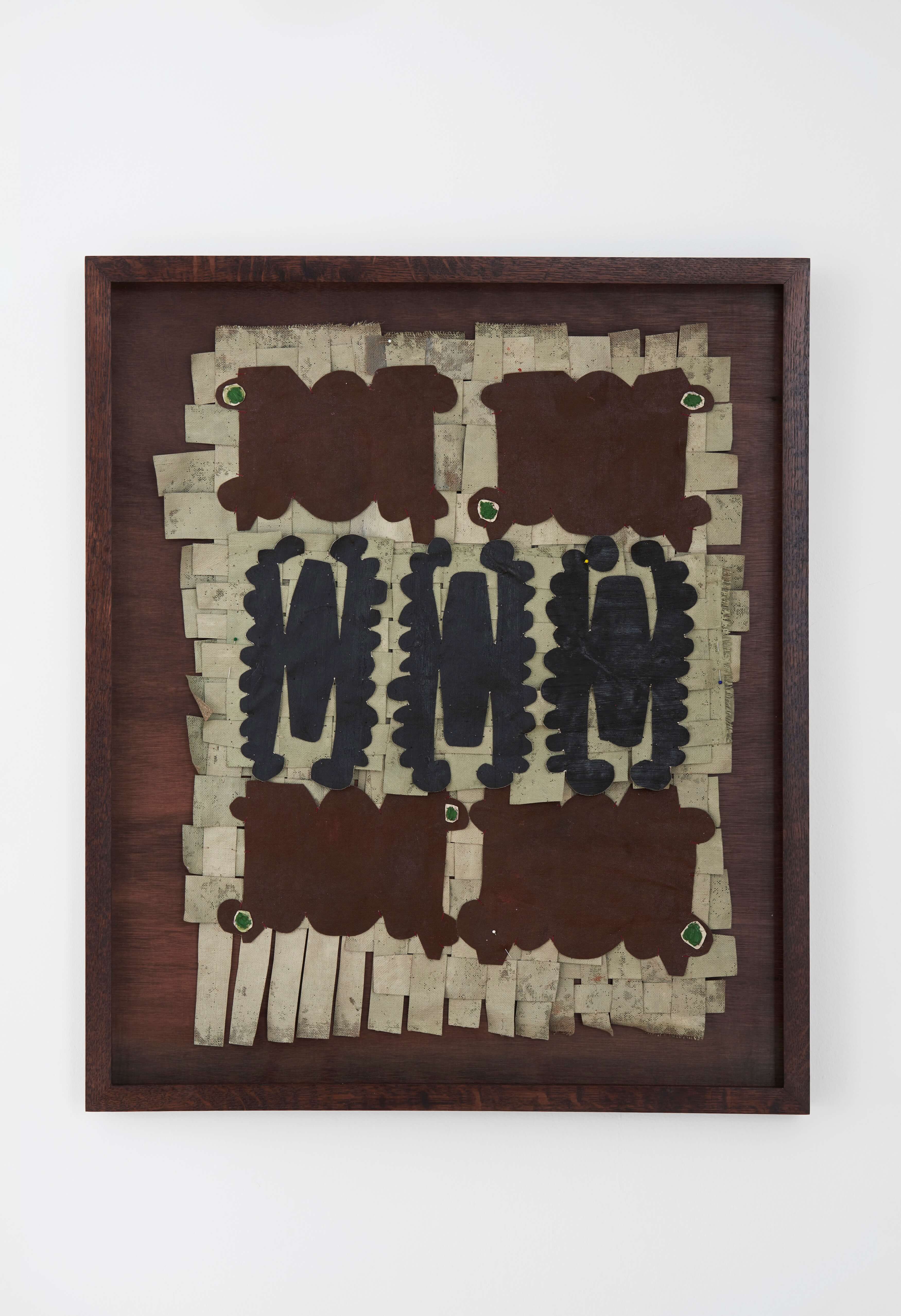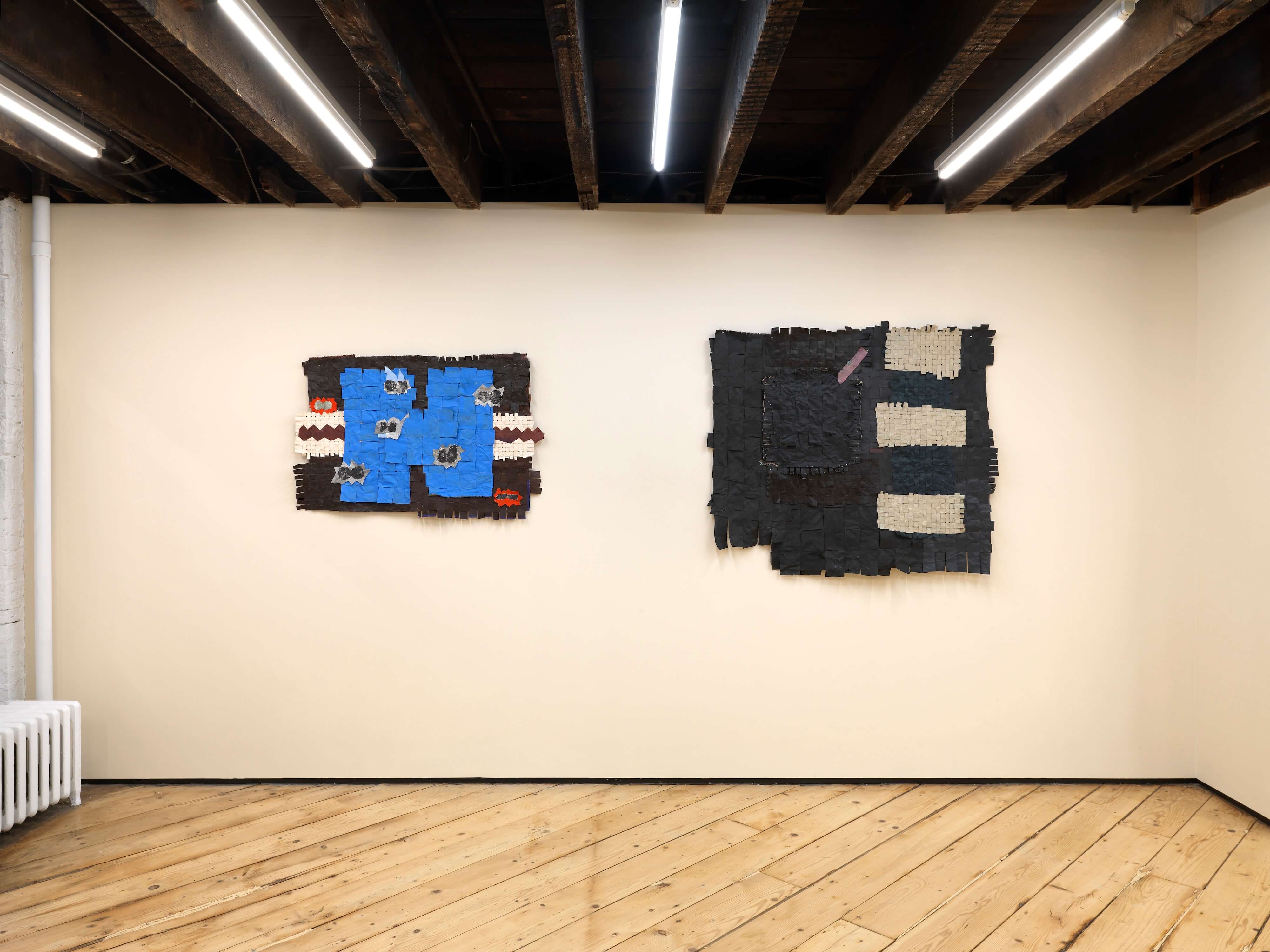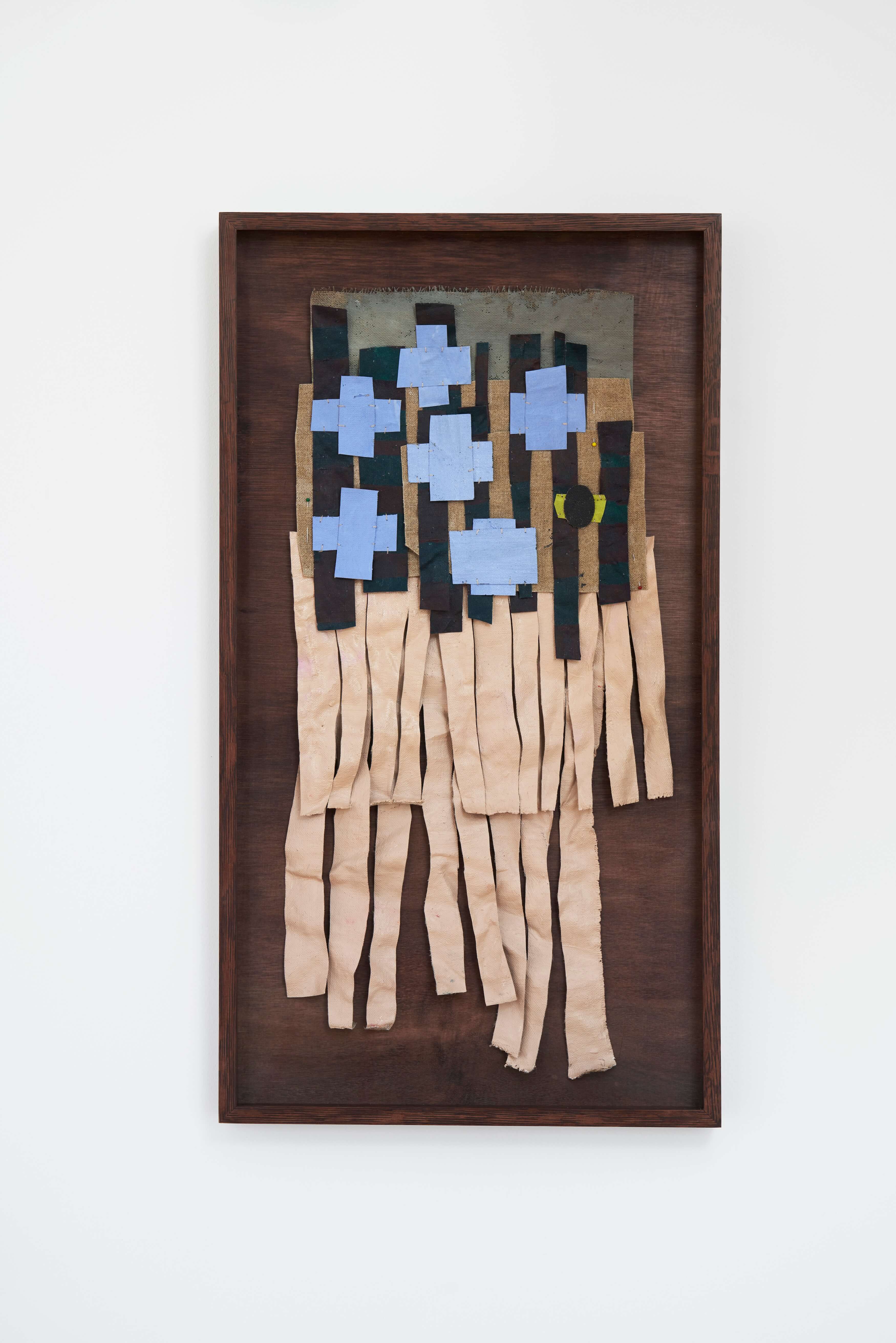 "Operating the field of painting like the frame of a sturdy loom, Some Images, Some Manuals suggests a space of broad and fathomless encounters - one that simultaneously encases its conversations and lets them boundlessly reverberate.This structure unmakes the artist herself: lacing depersonalised scraps of her own biography into the historical frames of men, Jauncems’ woven pantings cradle masculine frailty and point to the holes in the fabric of hierarchical, finite representation, leaving objects whose philosophical reflection is rooted in the interplay between muted colours and shoes, grounded in the physicality of suture."