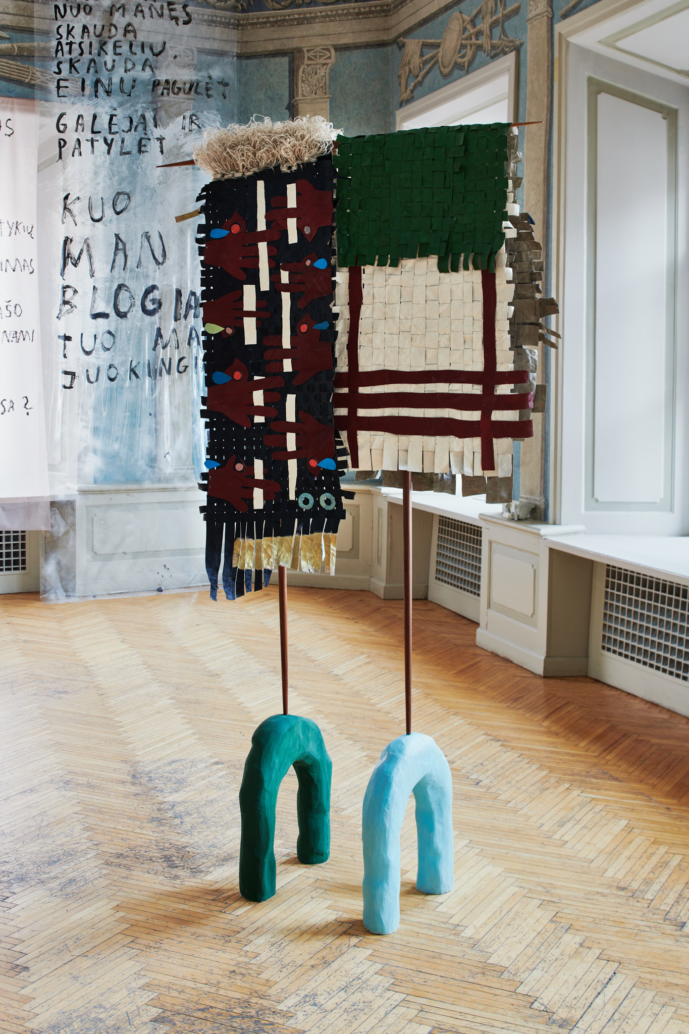 "The exhibition presents new works by contemporary artists Ieva Rojūtė, Morta Jonynaitė and Eglė Jauncems that express and discuss the concerns, joys, hopes and intuitions of the past and present worlds. Providing a complimentary energy are Lithuanian folk artefacts and works by Anastazija Tamošaitienė from the collection of the Židinys Gallery. There are no leading voices in this polyphony, instead, an endless drone of something painfully familiar and yet still undiscovered."